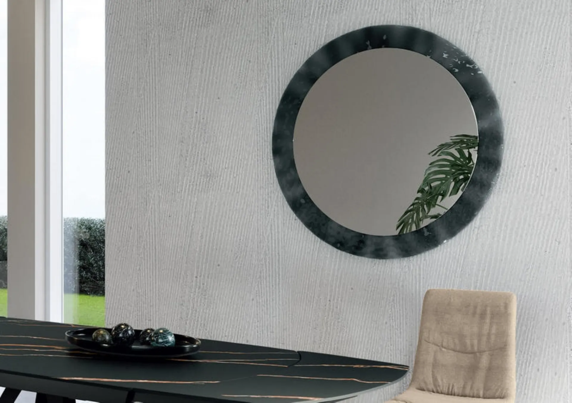 In negozio potrai vedere dal vivo tutte le più belle composizioni del rinomato marchio, tra cui trovi pure quelle complete di specchi moderni in vetro. Per completare al meglio gli ambienti interni è sufficiente un tocco sapiente da ottenere inserendo in mezzo al resto degli arredi alcuni Complementi di qualità. Dalla camera da letto al salotto, questi elementi accessori risultano oggetti irrinunciabili per completare perfettamente le doti di funzionalità e le doti estetiche dei locali. Stile e praticità distinguono le svariate soluzioni del brand, tra cui questa proposta di Specchio Iride di Stones in vetro di grande impatto estetico.