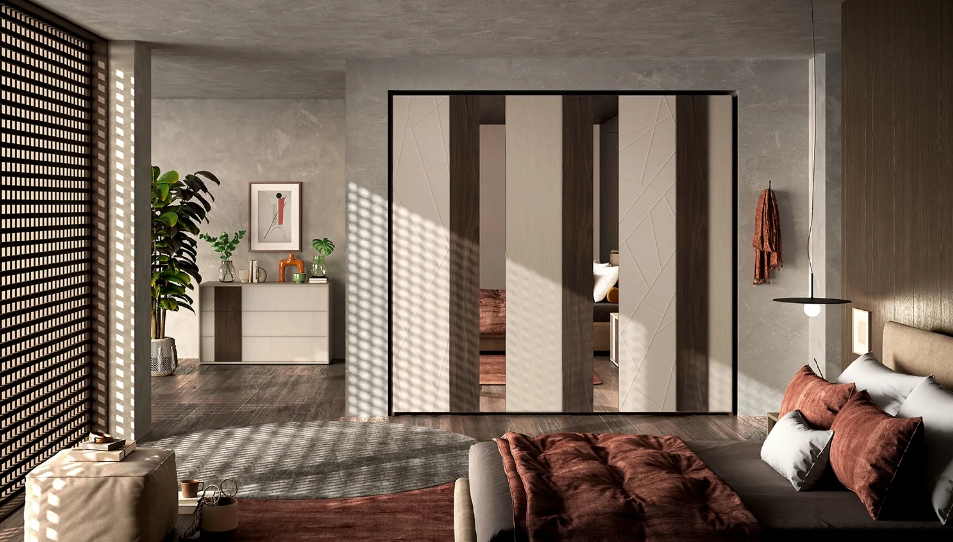 Gli Armadi a muro con ante battenti sono elementi immancabili nella camera da letto, per renderla ammobiliata al meglio, pratica e completa di tutto. Per allestire al meglio una stanza bella e di grande qualità, scegli le più originali soluzioni delle migliori marche, letti, armadi e comodini di alto contenuto estetico. Contattaci e scopri di più sulla nostra linea di Arredamento Casa: sarai in grado di completare la zona del riposo utilizzando una ricca gamma di contenitori moderni, come l'armadio in melaminico nell'immagine.