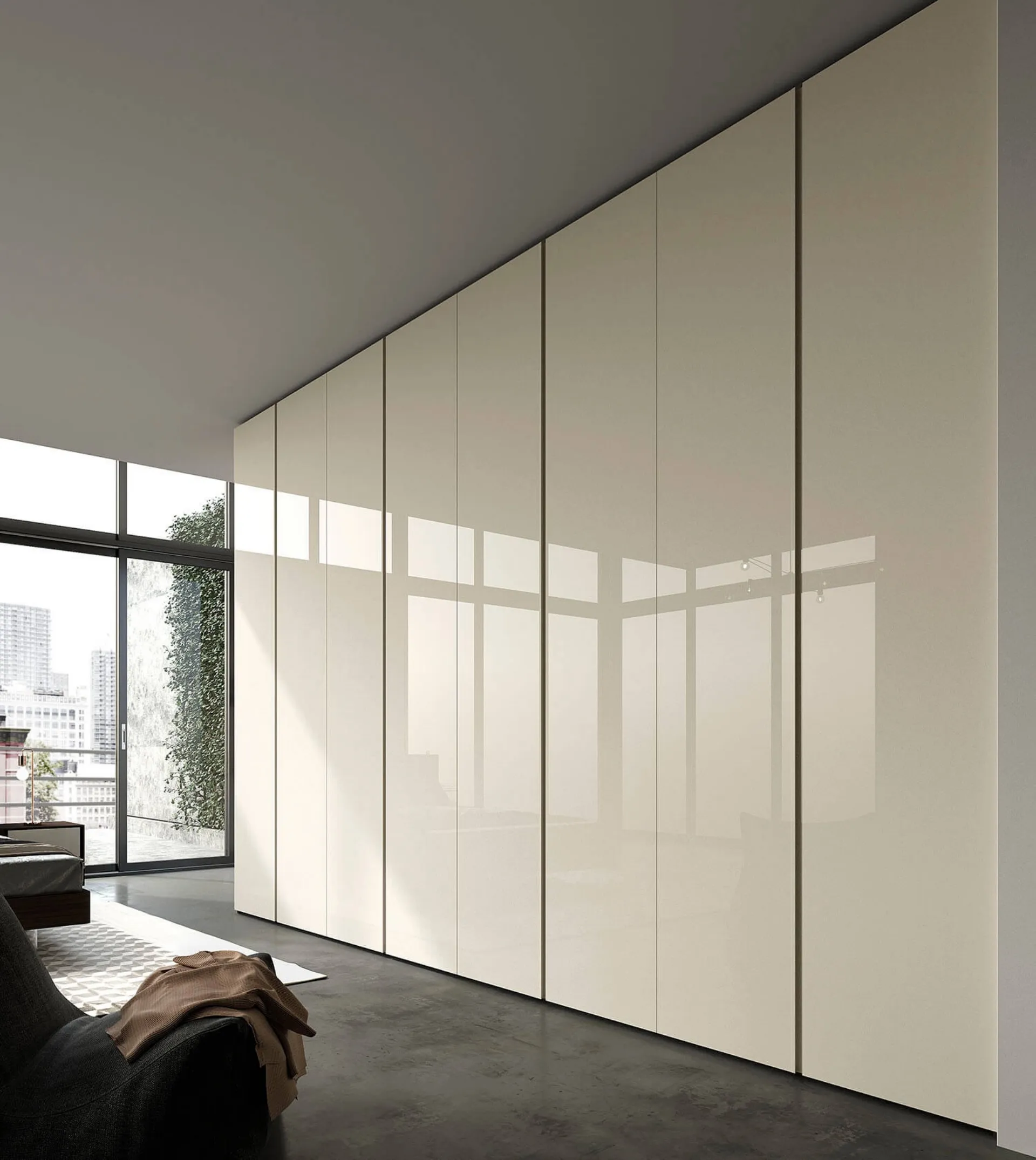 Gli Armadi a muro con ante battenti sono componenti immancabili in camera, per renderla arredata con gusto, pratica e completa di tutto. Per progettare al meglio una stanza funzionale ed esteticamente gradevole, scegli le più esclusive soluzioni delle migliori marche, letti, armadi e comò di alto contenuto estetico. Contattaci e ottieni informazioni sulla nostra collezione di Arredamento Casa: avrai la possibilità di completare la camera da letto contando su una diversificata varietà di mobili contenitori moderni, come l'armadio in laccato lucido nella fotografia.