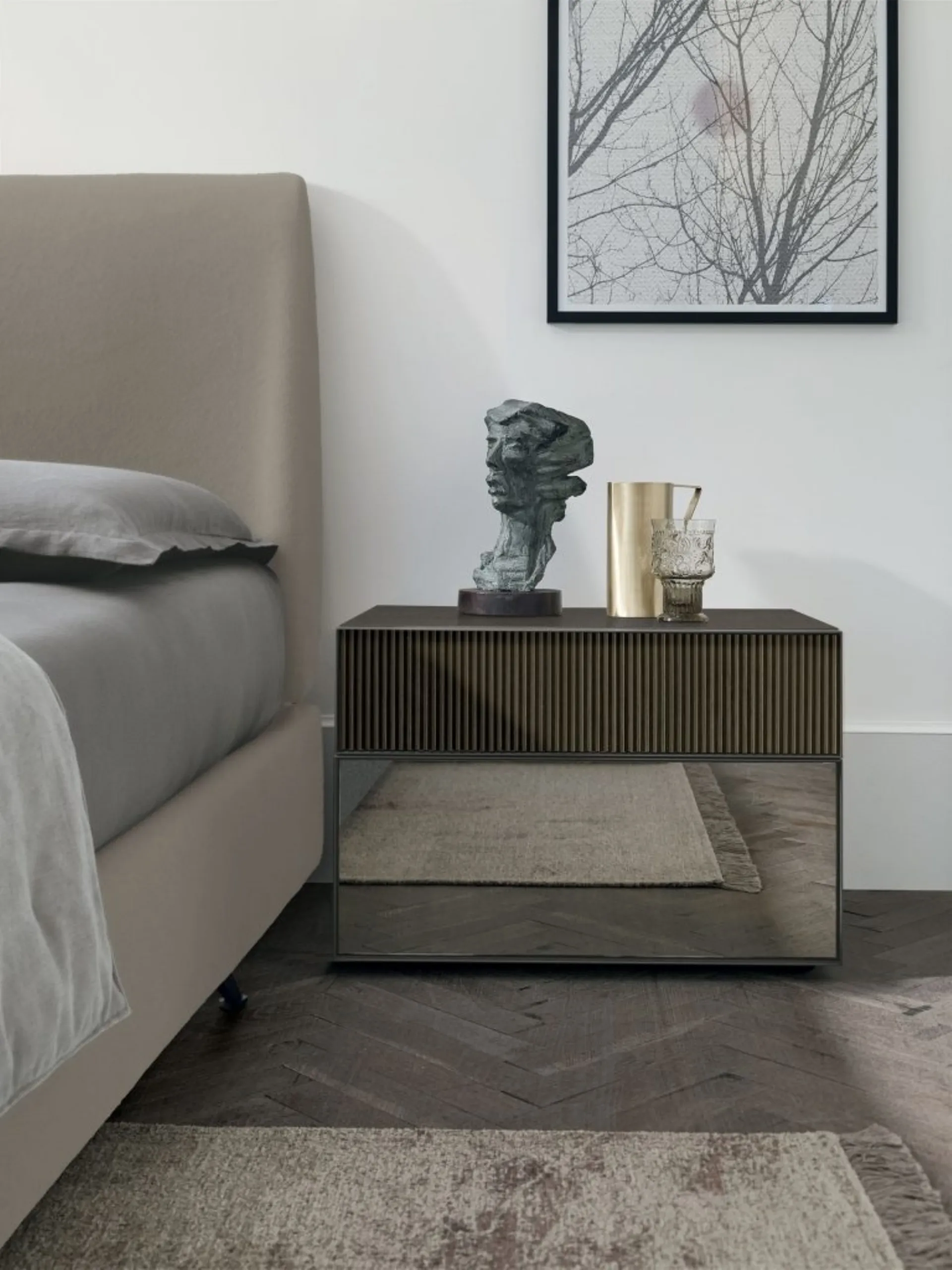 Il Gruppo Notte Vinci di Tomasella è una delle più esclusive soluzioni capaci di aggiungere un accento di stile in più alla camera, con l'uso di materiali di pregio. In negozio ti sta aspettando una ricca gamma di mobili e oggetti accessori design del noto e conosciuto brand, leader nella realizzazione di Arredamento Casa per la zona notte. I Comodini, comò e gruppi notte possono essere abbinati al letto e all'armadio o possono essere in equilibrato contrasto con essi: la scelta si baserà sulle oggettive possibilità di spazio e sulla ricerca di un armonioso effeto finale.