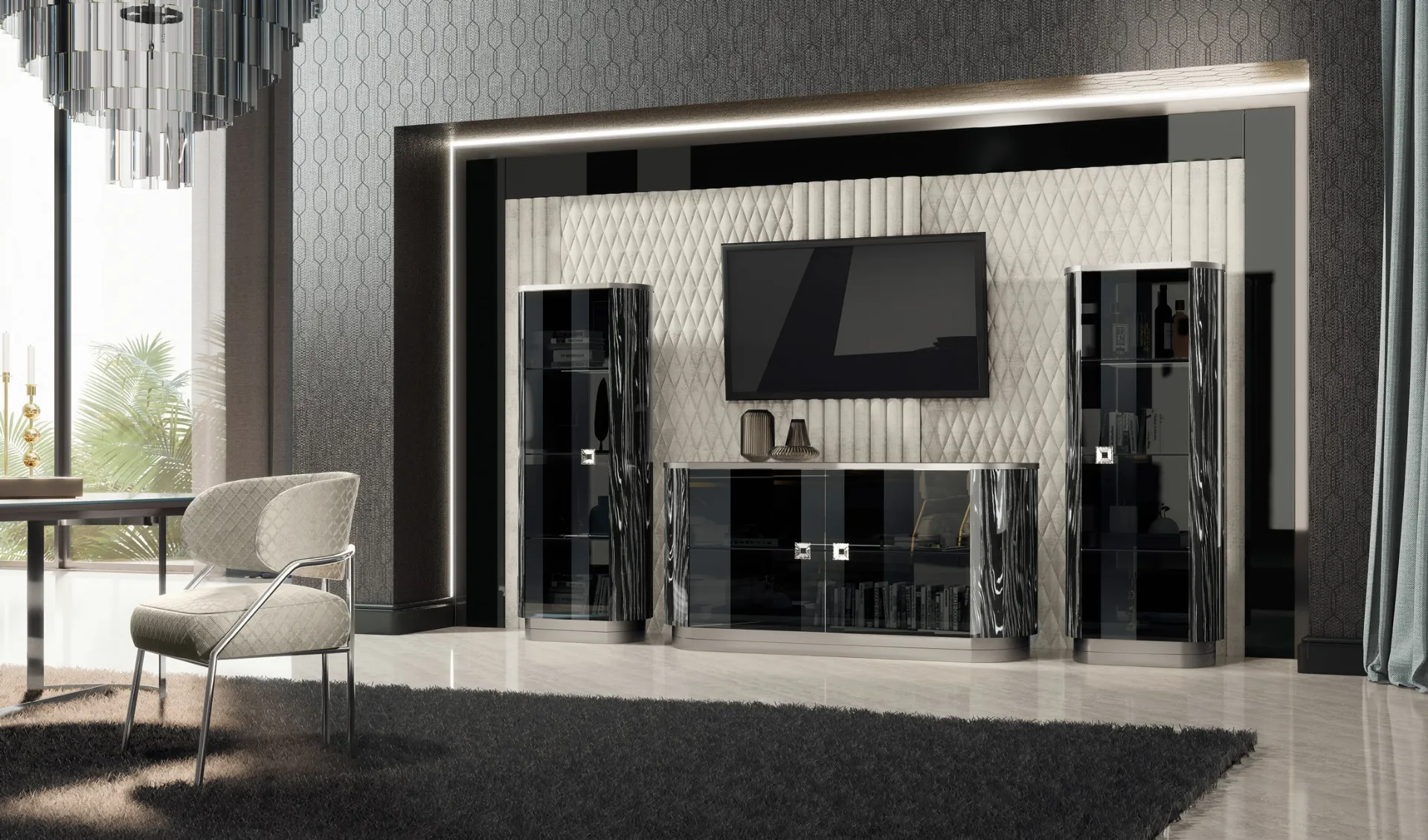 Poiché il living deve essere uno spazio ben organizzato e bello a vedersi, sono necessari alcuni arredi belli e funzionali come le Pareti Attrezzate. La Parete Attrezzata Duse di Adriatica nella fotografia è una tra le più originali soluzioni d’arredo in commercio: l'alta componibilità e le differenti opportunità di progettazione la rendono bella e di grande qualità. I mobili soggiorno in legno dalle linee moderne come il modello nella fotografia sono davvero versatili e capaci di allestire la zona giorno sfruttando bene ogni angolo. Lasciati stuzzicare da un ricco catalogo di arredi per la zona giorno e potrai trovare la parete attrezzata che fa per te.