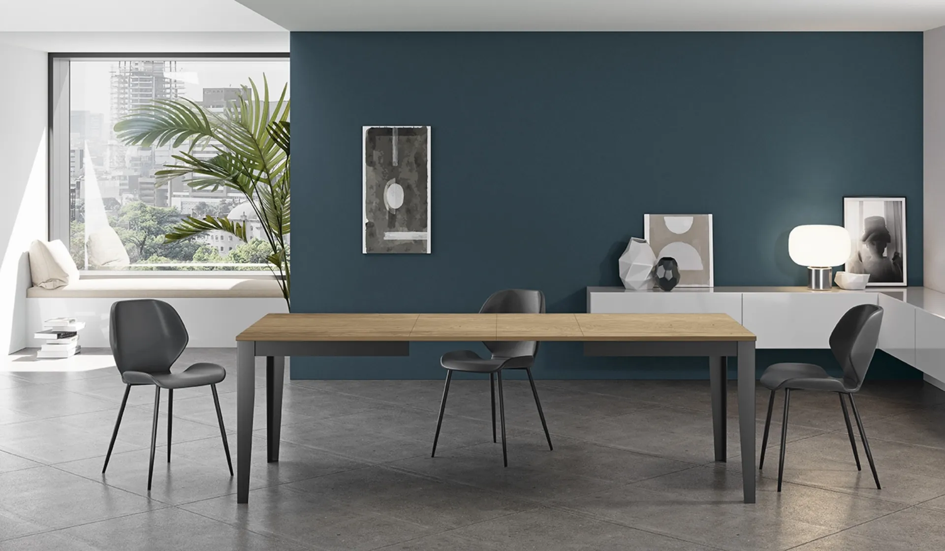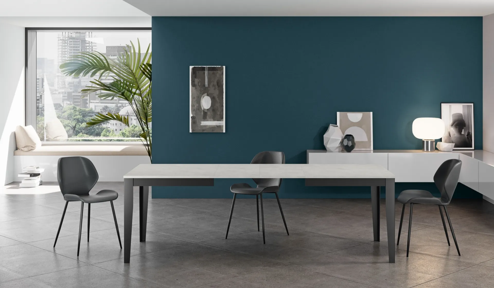 Tavolo allungabile Big di Stones: realizzato in materiali pregiati è connotato dalle forme decise del top e da un basamento elegante e sofisticato. Se cerchi un tavolo da cucina di alto contenuto estetico, contattaci e ricevi info e preventivi sul modello mostrato in foto. Il noto e rinomato brand Stones, specialista nella produzione di arredi in melaminico, ha scelto per la sua collezione una vasta gamma di finiture, linee e cromie. Un modello come quello nella fotografia, in abbinamento alle giuste sedie, saprà valorizzare l'atmosfera delle stanze di casa dedicate in assoluto all'ospitalità.